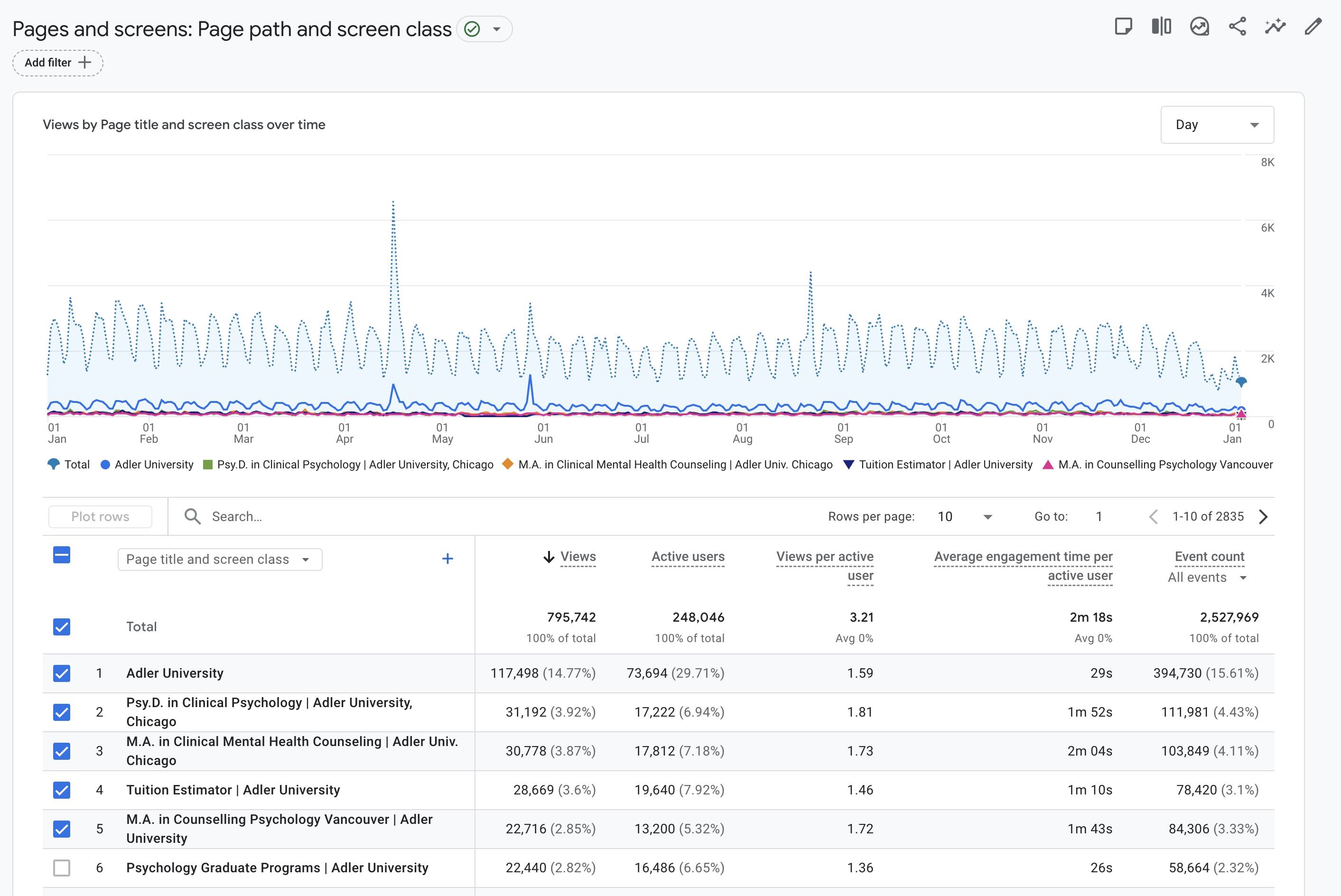 Views per user within the Program Index nearly doubled, indicating deeper comparison behaviour.