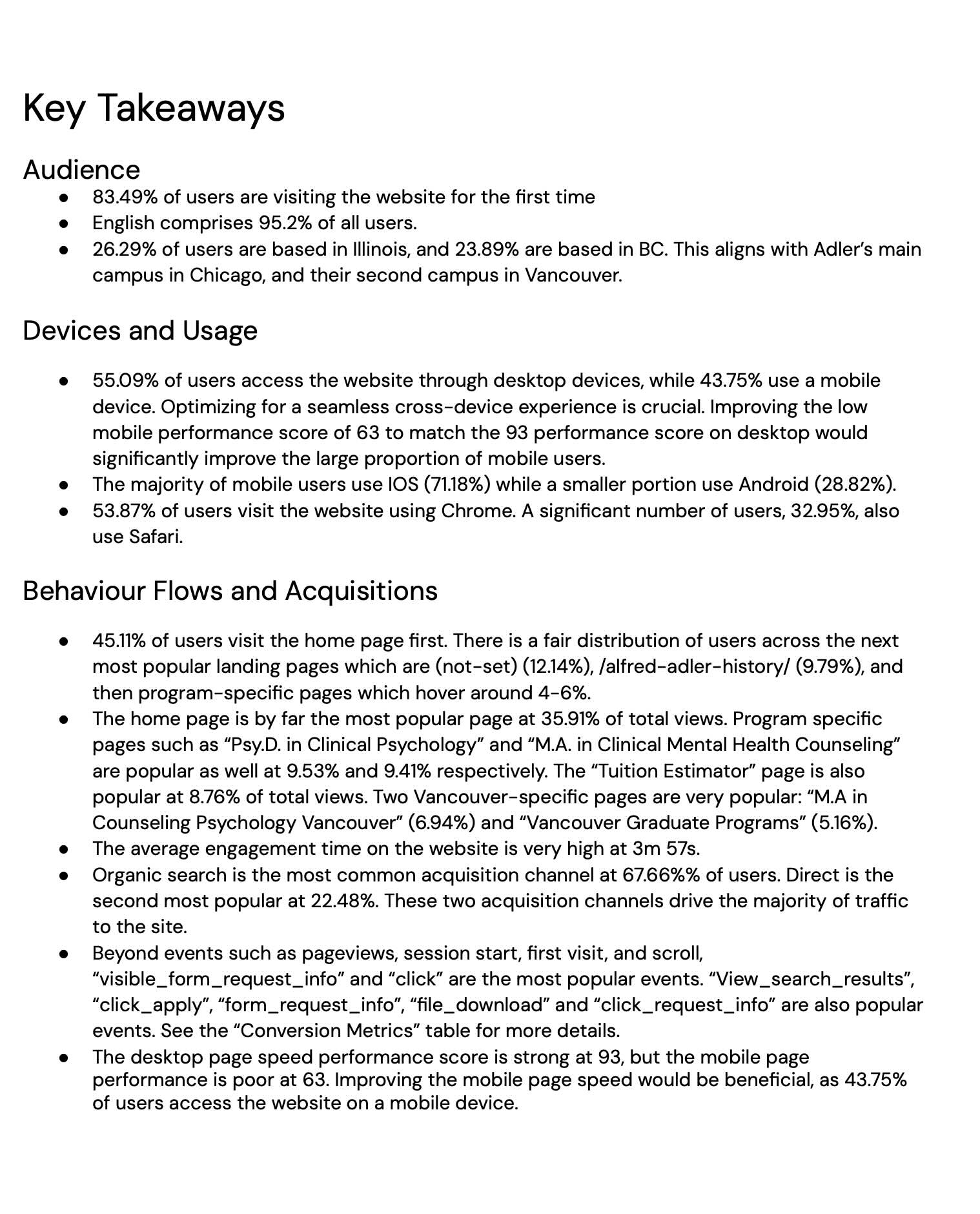I conducted analytics audits, competitive benchmarking, stakeholder interviews, and workshop facilitation across Chicago and Vancouver campuses to uncover enrolment friction and decision barriers.